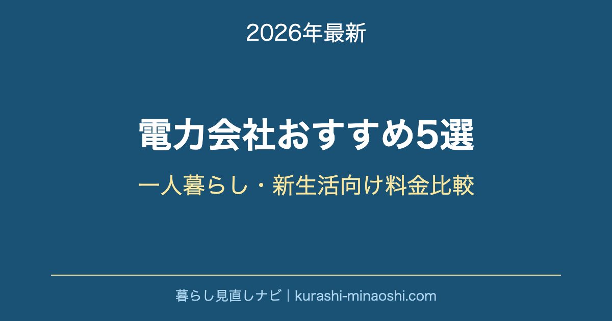 この記事では、一人暮らし・新生活向けにおすすめの電力会社5社を、料金・特徴・ポイント還元まで徹底比較します。月の電気使用量や重視したいポイント別に「あなたに合った電力会社」がわかるよう整理しましたので、ぜひ参考にしてください。